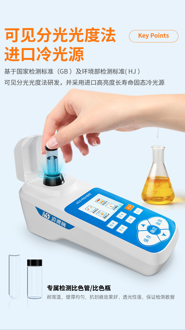 采用消解比色一體管檢測,讓檢測更加簡單、安全。儀器以其外觀設(shè)計小巧、檢測快速、操作簡單、成本低等特點,廣泛應(yīng)用于應(yīng)急監(jiān)測、污水處理、化工、制藥、醫(yī)院廢水、食品、印染等行業(yè)廢水檢測方面,還可以應(yīng)用于科研單位、大中專院校等機構(gòu)的廢水研究使用。