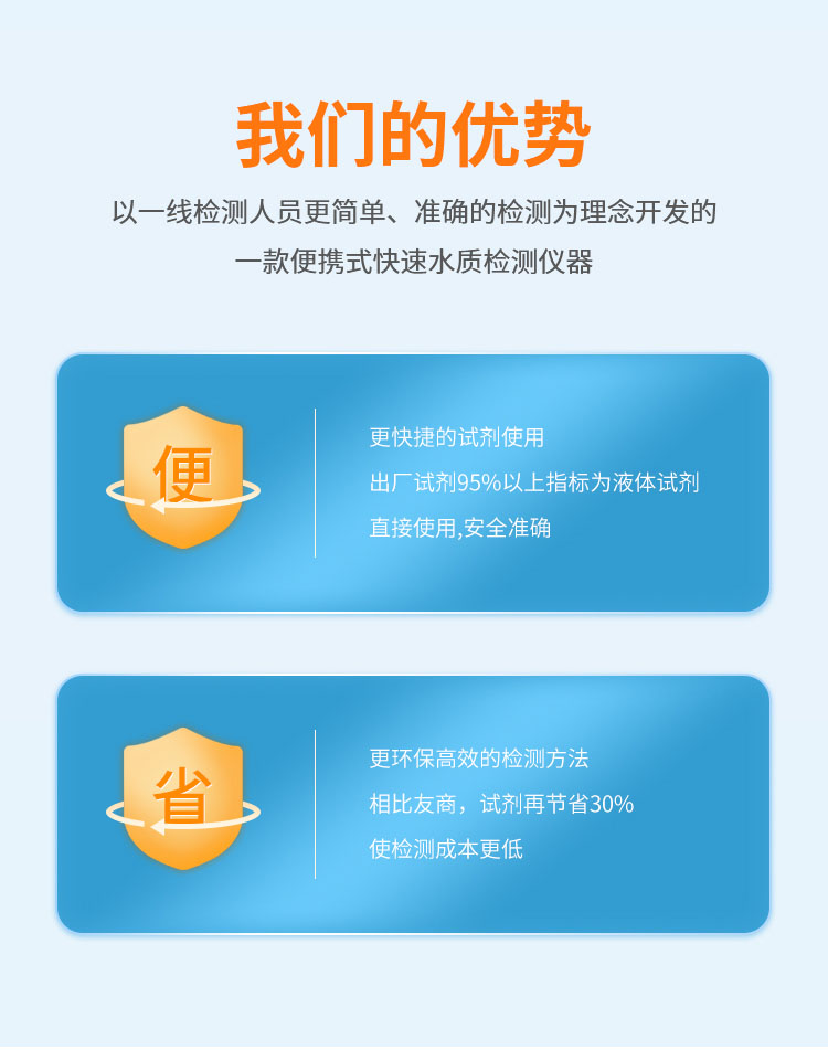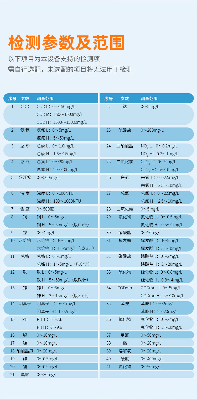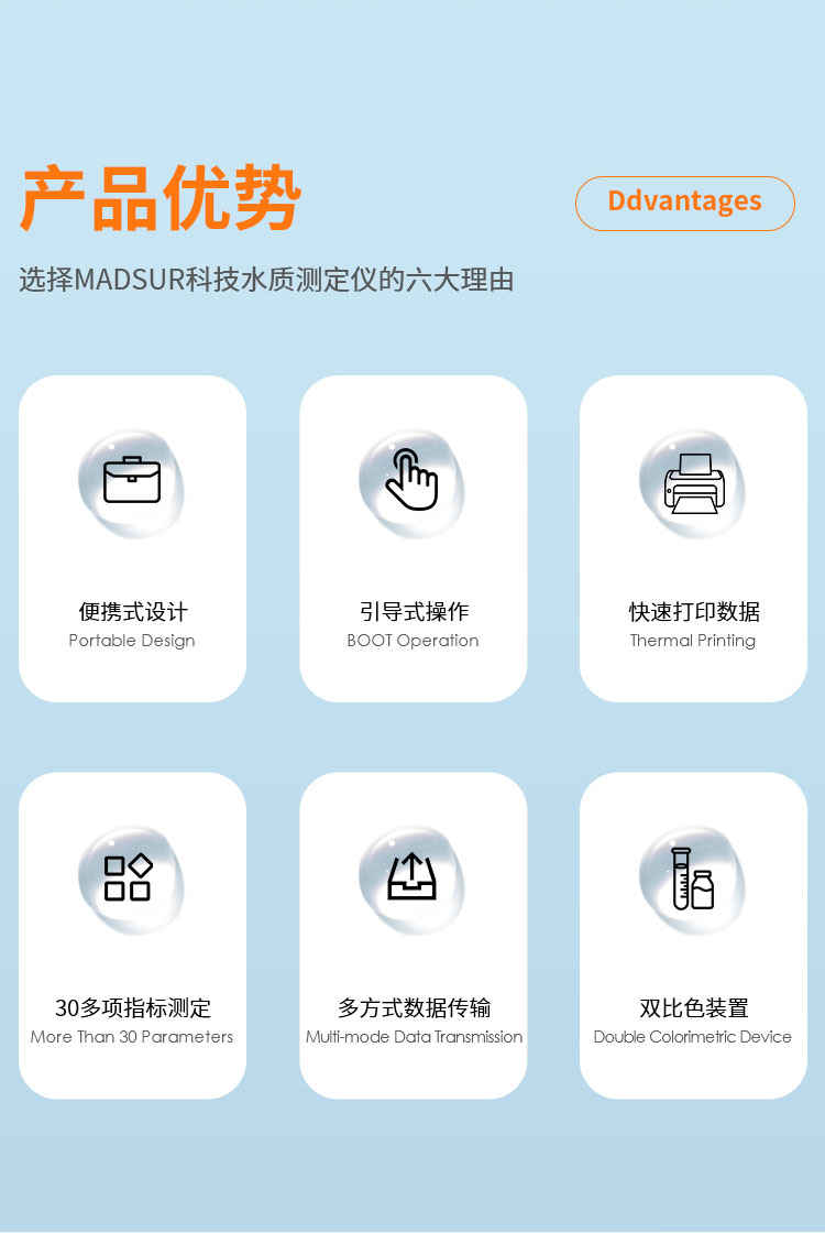 5、用戶還可以自行開發(fā)用戶程序和試劑,以適應(yīng)不同場合不同水體狀況。