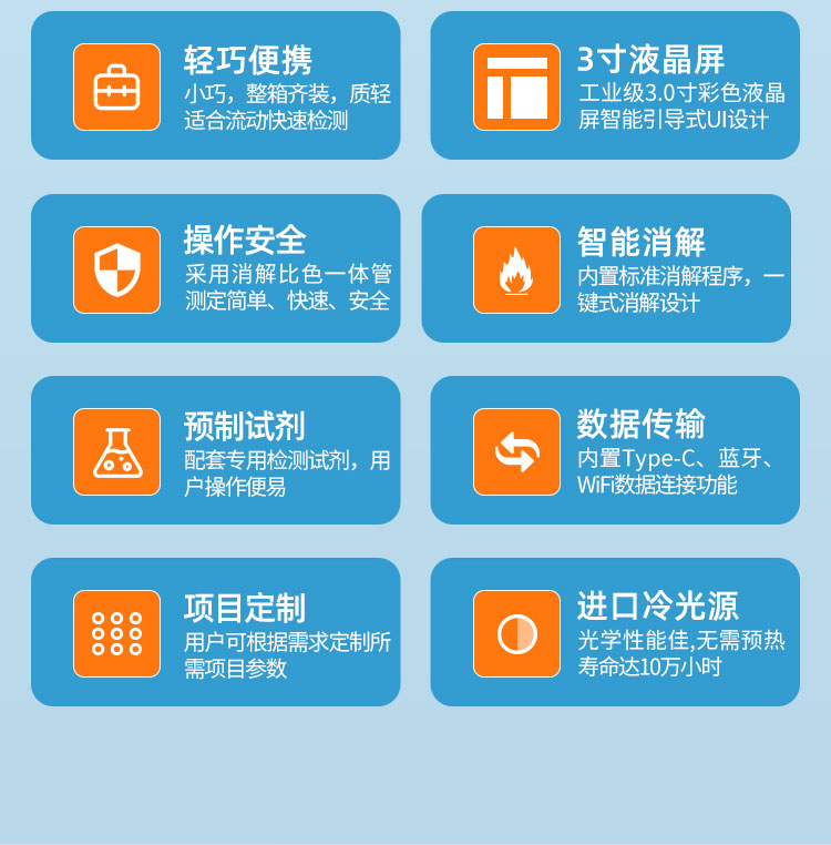 7、操作安全:采用消解比色一體管,測定簡單、快速、安全。