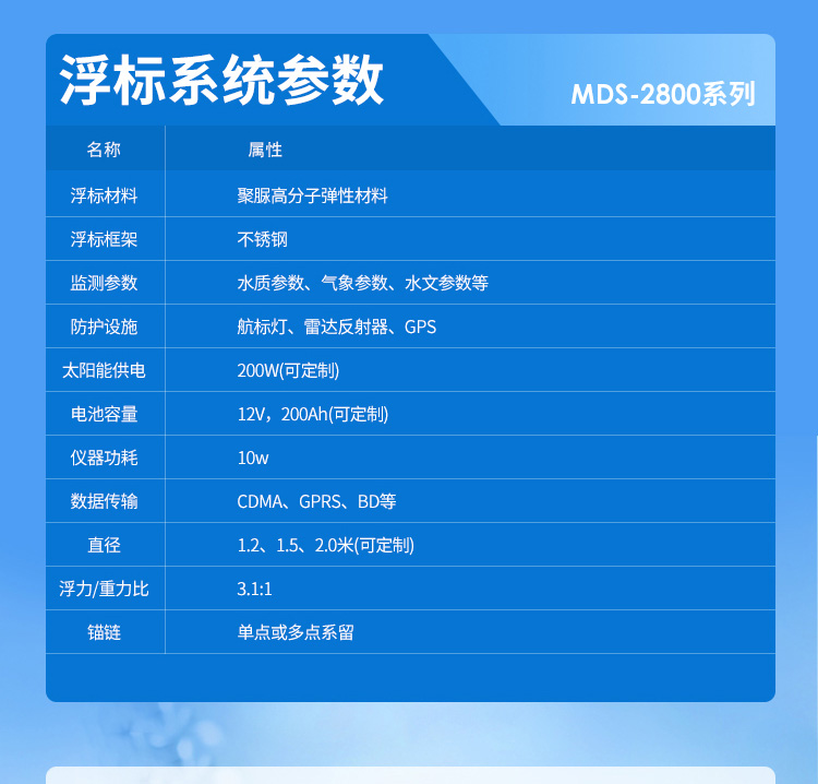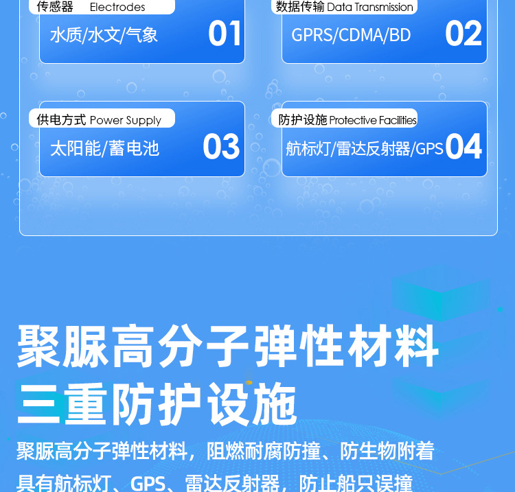 海洋浮標水質(zhì)監(jiān)測站是一款以浮標為載體,集材料科學(xué)、傳感器技術(shù)、數(shù)傳技術(shù)為一體的水質(zhì)監(jiān)測系統(tǒng)。