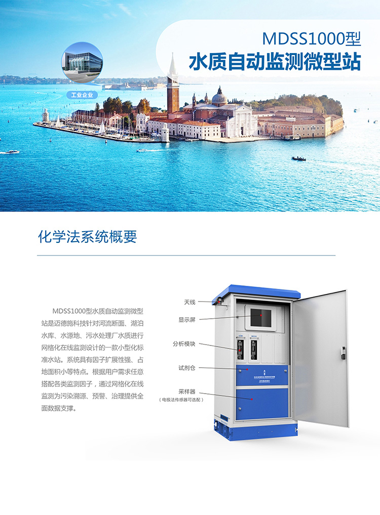 MDSS1000型水質(zhì)自動(dòng)監(jiān)測微型站是邁德施科技針對河流斷面、湖泊水庫、水源地、污水處理廠水質(zhì)進(jìn)行網(wǎng)格化在線監(jiān)測設(shè)計(jì)的一款小型化標(biāo)準(zhǔn)水站。系統(tǒng)具有因子擴(kuò)展性強(qiáng)、占地面積小等特點(diǎn)。根據(jù)用戶需求任意搭配各類監(jiān)測因子,通過網(wǎng)格化在線監(jiān)測為污染溯源、預(yù)警、治理提供全面數(shù)據(jù)支撐。